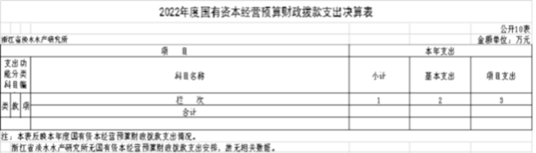 浙江省淡水水产研究所 2022 年度无国有资本经营预算财政拨款收支安排,故无相关数据。
